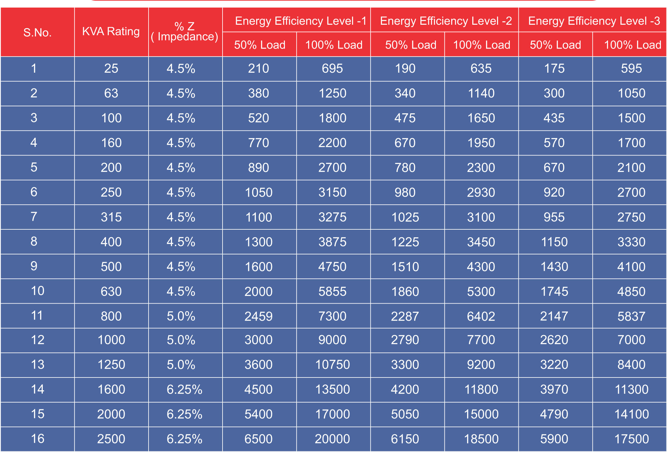 - For Transformers with Voltage class above 11 kV and up to and including 22 kV, The permissible total loss value shall not exceed by 5% of the maximum total loss as per above table.